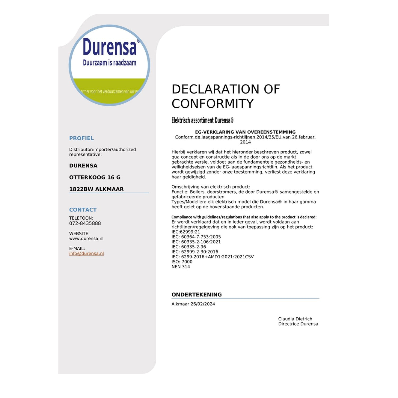 Deze verwarming is niet alleen voordelig in aanschaf, maar ook in gebruik. Door zijn efficiënte verwarmingsmethode en energiezuinige ontwerp, helpt de Durensa® bureauverwarming u om op uw energierekening te besparen. Daarnaast draagt u bij aan een duurzamer milieu door te kiezen voor een product dat ontworpen is met oog voor energie-efficiëntie.